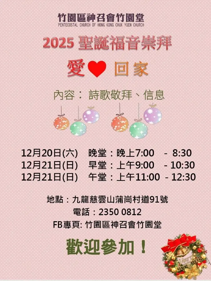 2025年12月20-21日-聖誕節福音崇拜新來賓留名